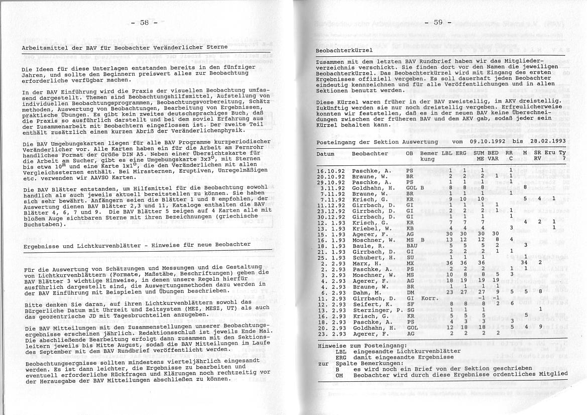 BAV Rundbrief 1/1993 Seite 58-59