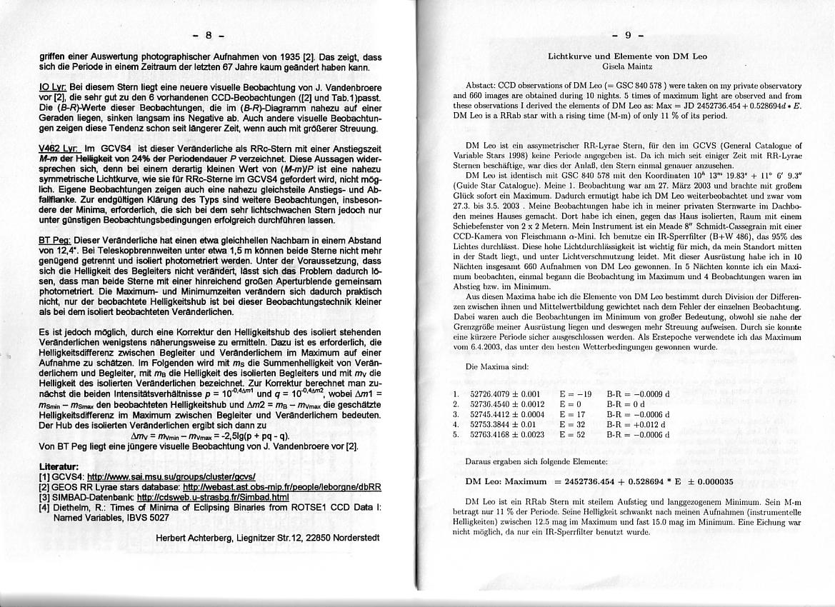 BAV Rundbrief 1/2004 Seite 8-9