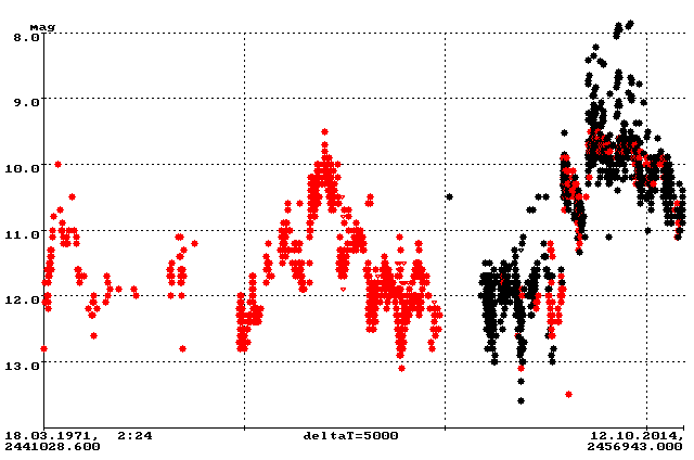 Beobachtungen der BAV (rote) und aus dem VSNET (schwarz)
