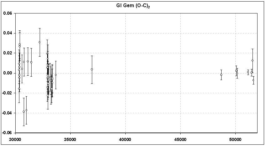 - das Maximum von GI Gem tritt ca. 1.7 h SPÄTER als nach Ephemeride lt. GCVS4 ein